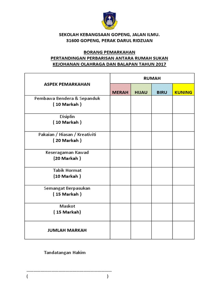 Related : Borang Pemarkahan Perbarisan Rumah Sukan : Perbarisan rumah delima untuk hari sukan sdm 2019..