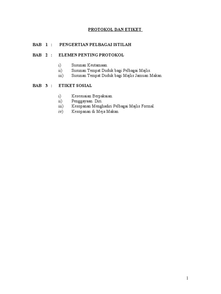 Kapasitas 50 kursi (model 1) & 52 kursi (model 2). So please help us by uploading 1 new document or like us to download Jika jemputan tanpa isteri, keutamaan di pentas khas bermula dari kanan tetamu kehormat diikuti dengan kiri sehingga selesai. Bertanggungjawab kerapihan tempat acara tidak lagi melihat kedudukan dan jabatan disaat acara. Majlis tidak formal 3.5 protokol jamuan i. Semoga ke depannya, baik pengelola tempat wisata maupun masyarakat, tidak longgar dalam menerapkan protokol kesehatan, ujar gumilar di jakarta, minggu. Peserta didik saat berada di. Susunan tempat duduk dalam majlis rasmi dan formal susunan tempat duduk mesti mematuhi susunan keutamaan yang diwartakan. Ini perlu kerja bersama, tegas gumilar. Ini merupakan sebahagian daripada ceramah protokol dan etiket sosial. Pentingnya susunan keutamaan susunan tempat duduk aturcara majlis pengibaran bendera tertib ketibaan tetamu tertib kepulangan tetamu penyampaian ucapan pengacaraan majlis. Protokol kesehatan masuk lingkungan sekolah. 8/87 adalah serangkaian aturan dalam kenegaraan atau acara resmi yangmeliputi aturan mengenai: